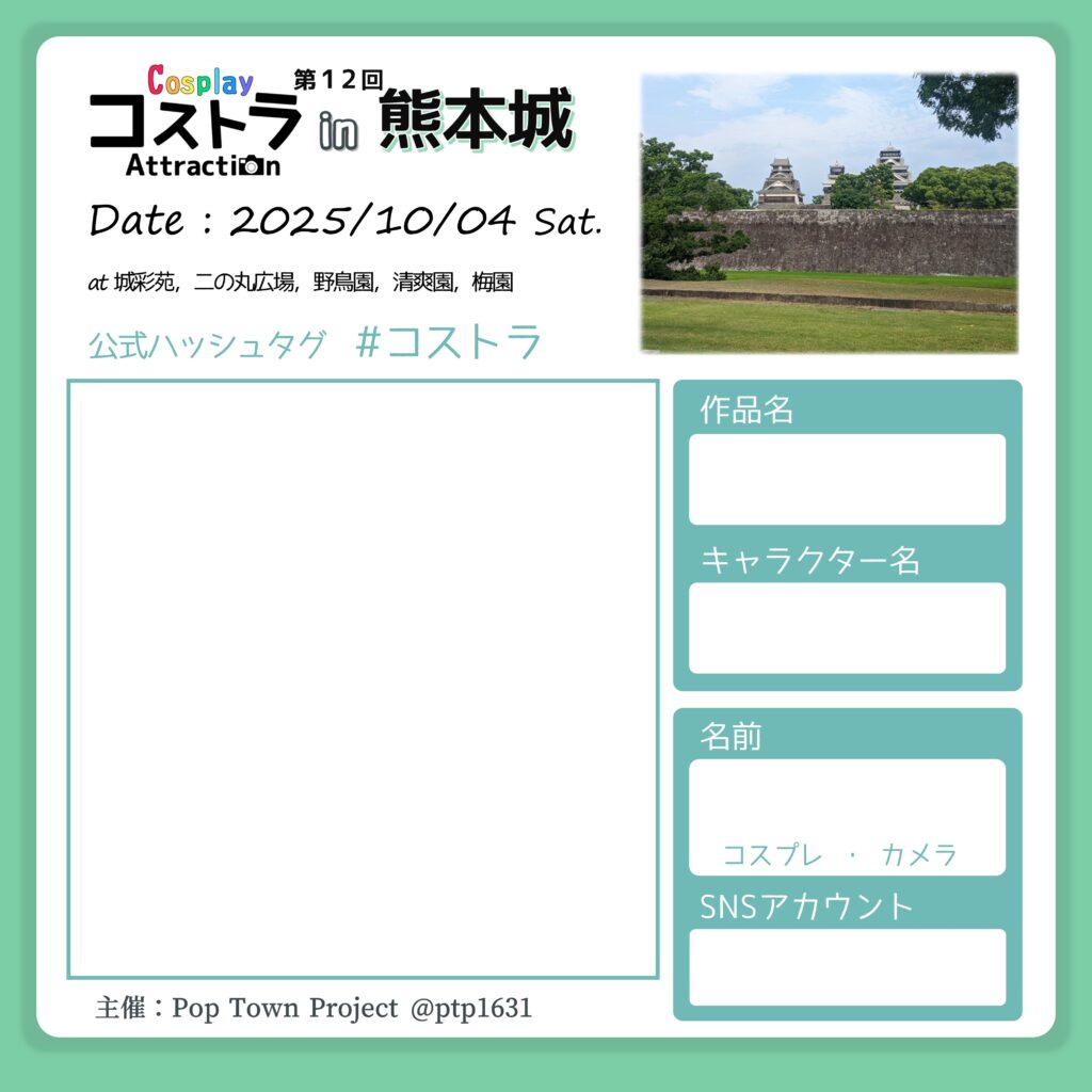 熊本城の復興を目的として、コスプレ撮影会「第12回コストラクションin熊本城」を開催します。