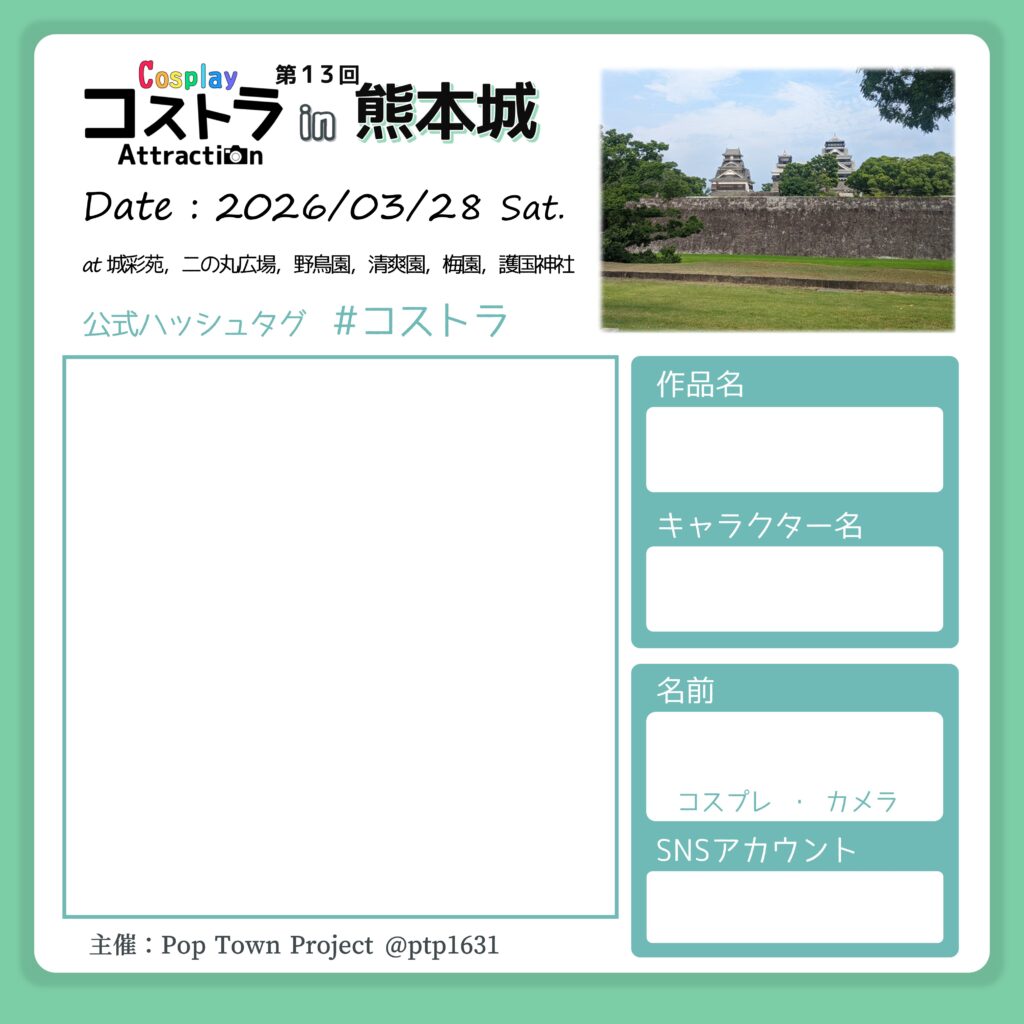 熊本城の復興を目的として、コスプレ撮影会「第13回コストラクションin熊本城」を開催します。