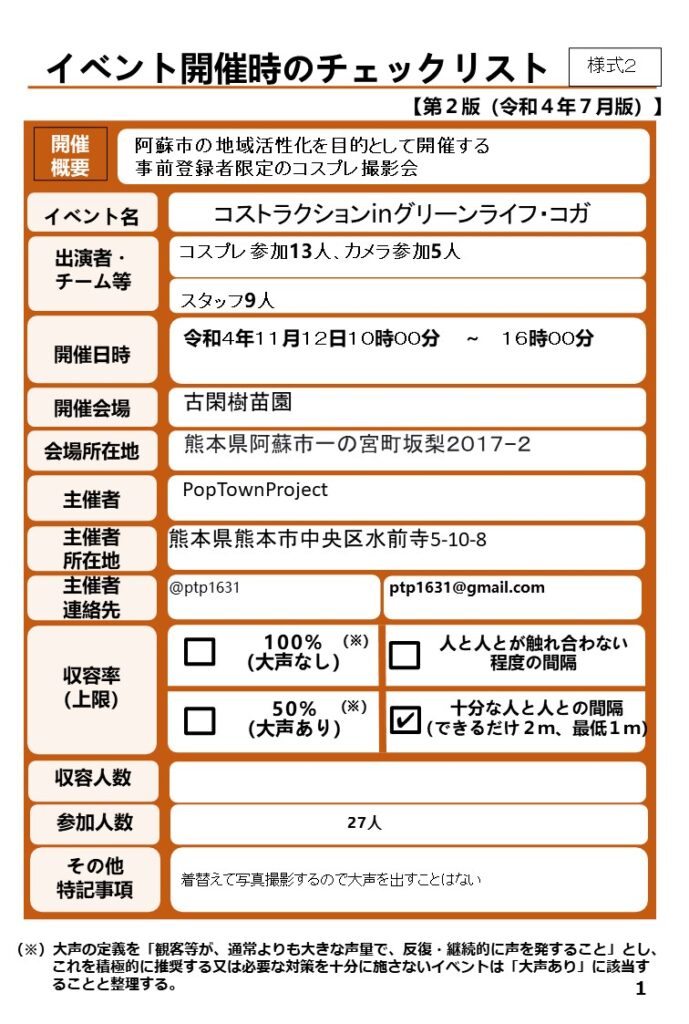 【感染防止策チェックリストの公開】
