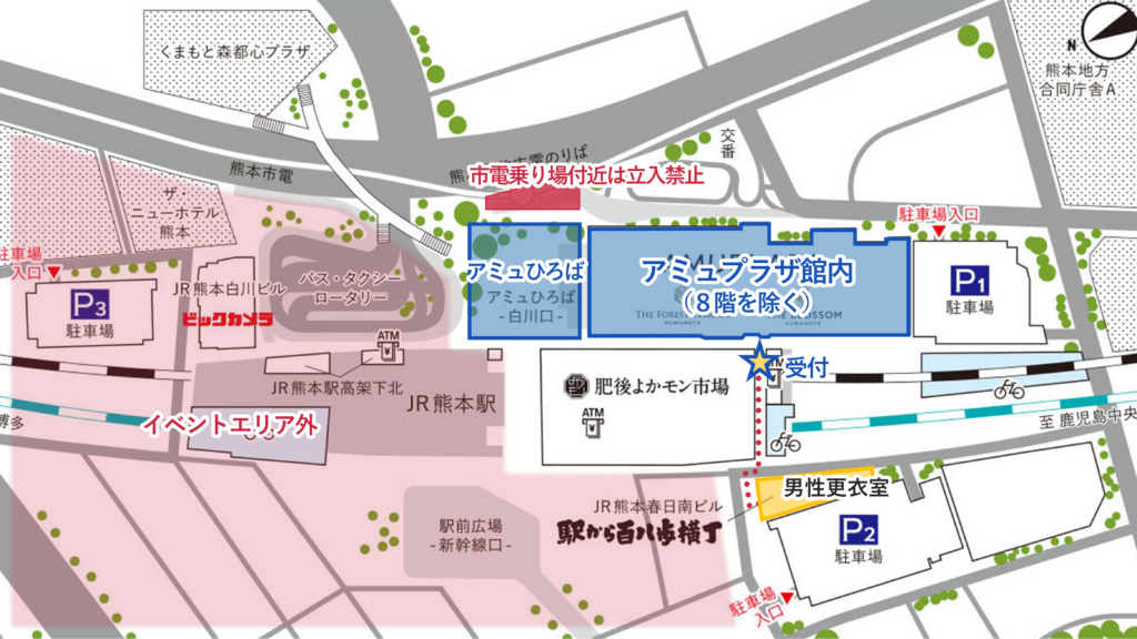 ・熊本駅構内及び肥後よかもん市場内は原則としてイベントエリア外です。