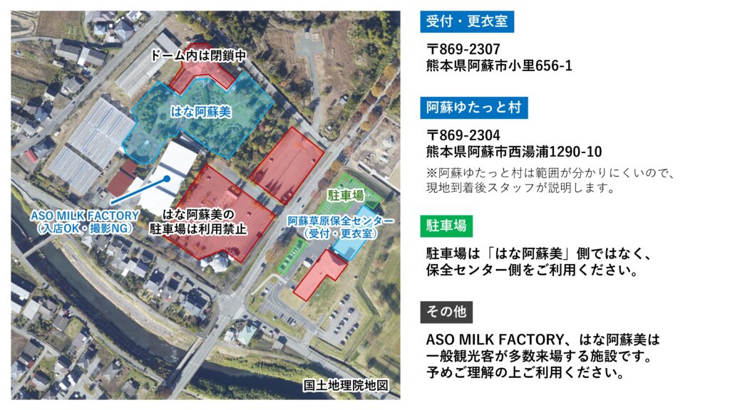 ※ASO MILK FACTORY側の駐車場は使わないでください。