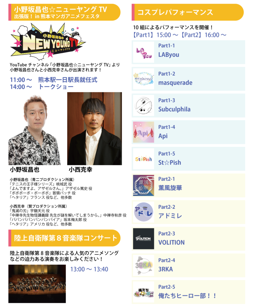 5月6日(火)には「小野坂昌也☆ニューヤングTV 出張版!in熊本マンガアニメフェスタ」と題して、小野坂昌也さんと小西克幸さんによるトークショーを開催!